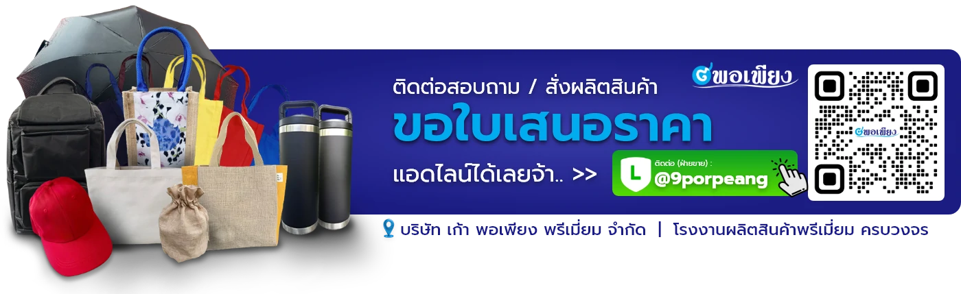 เราคือโรงงานผู้ผลิต นำเข้าและจัดจำหน่ายสินค้าพรีเมี่ยม ครบวงจร กระเป๋าผ้า / แก้วน้ำ กระบอกน้ำ / หมวก / ร่ม / พวงกุญแจ ของแจก ของที่ระลึก ของชำร่วย สินค้าพรีเมี่ยมทุกชนิด (ประสบการณ์มากกว่า 15 ปี)